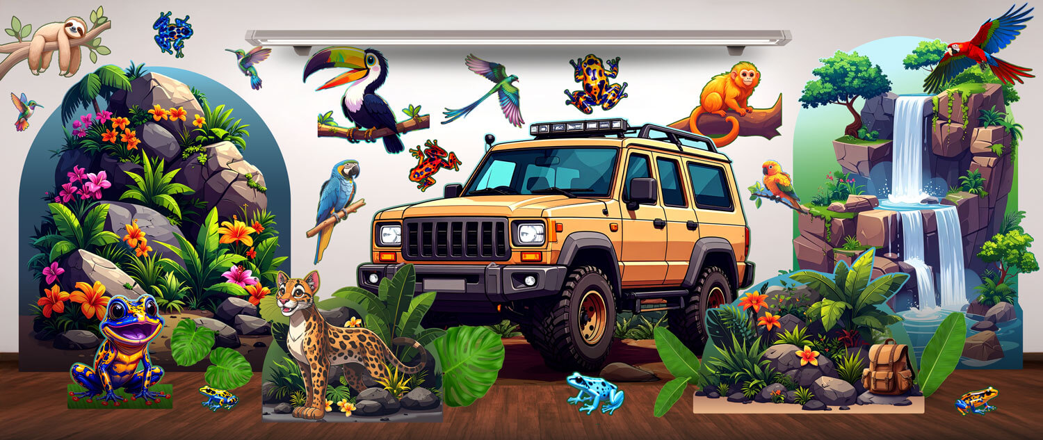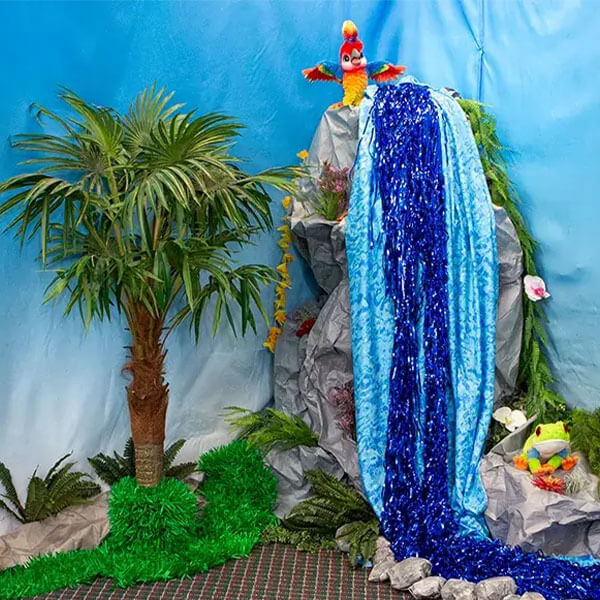 Start with a lush rainforest background to fully immerse your stage in the setting.
